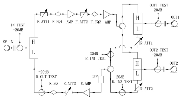 1) 增益和噪声测量时,中间级衰减器为4dB其它衰减器和均衡器均为0 dB